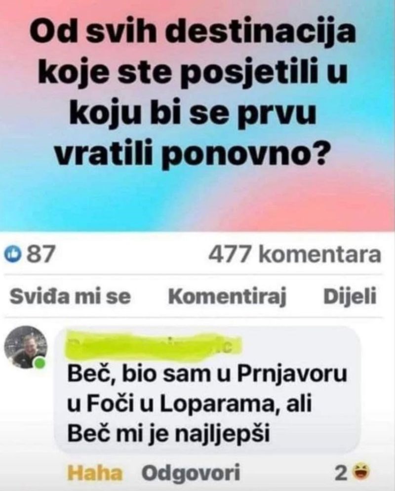 Ljudi na Fejsu komentiraju koja bi mjesta opet posjetili, iskreni odgovor ovog tipa apsolutni je hit