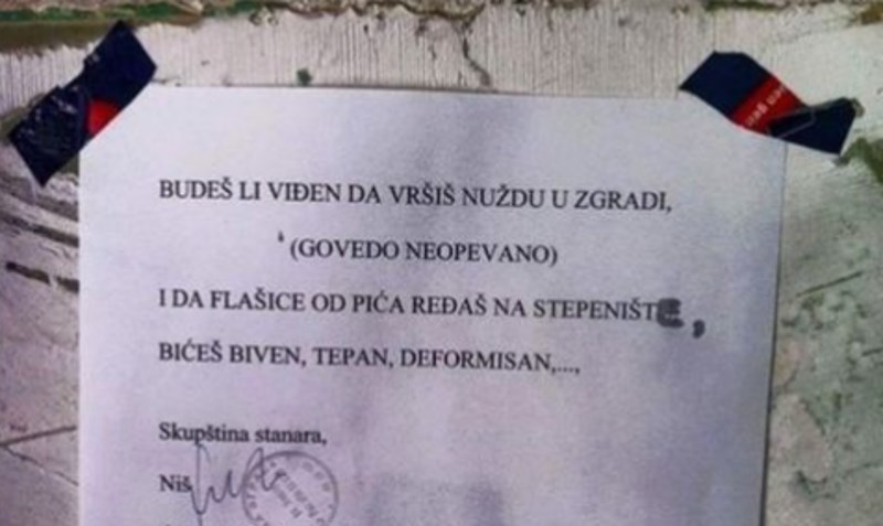 Stanari zgrade u Nišu ostavili su bijesnu poruku jednom od susjeda, razlog će vas zgroziti