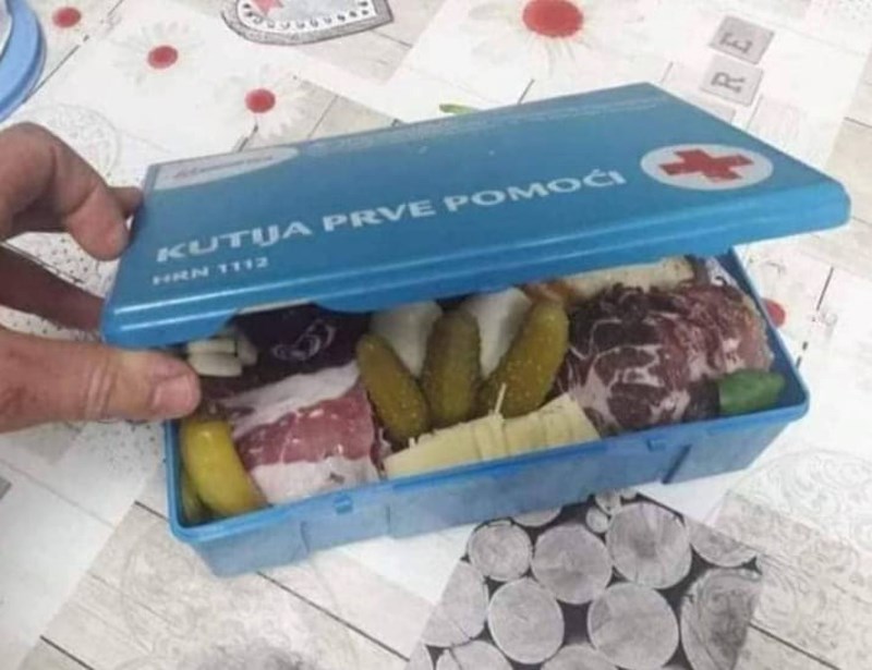 Dok se u ostatku svijeta u kutijama za prvu pomoć drže razni zavoji, sterilne komprese, gaze i flasteri, na našim prostorima situacija zna biti malo drugačija. 😆