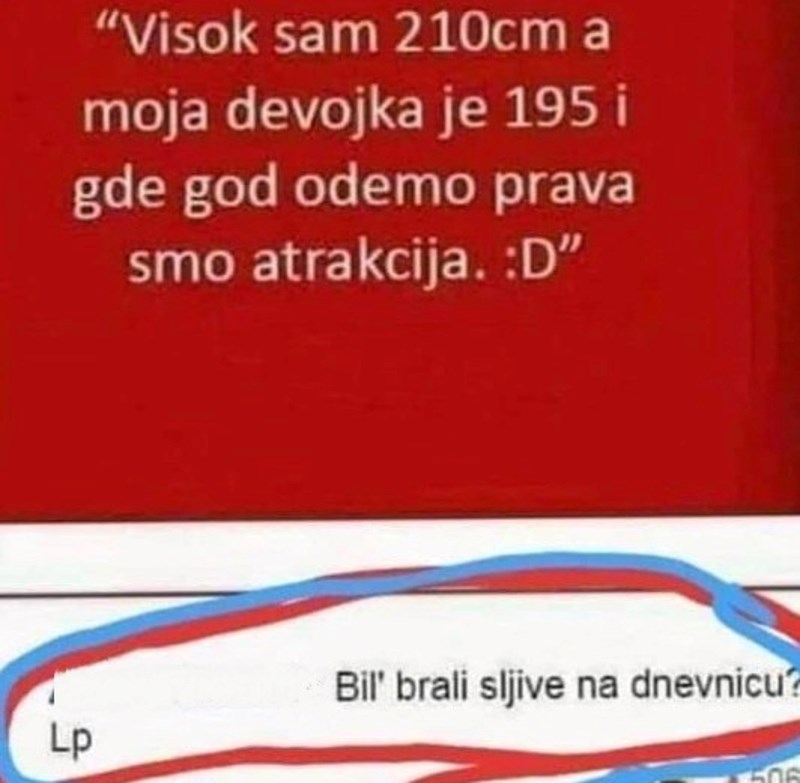 Tip je na Fejsu iznio zanimljivost o nadprosječnoj visini sebe i cure, čak se pohvalio i kako su atrakcija svugdje gdje se pojave. Odgovor jednog tipa ubrzo je ukrao cijeli show! Morate vidjeti!