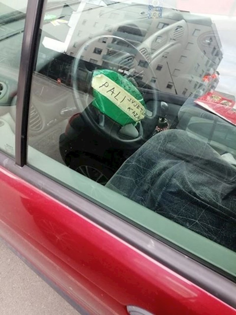 Kako bi doskočio problemu svoje zaboravljivosti, jedan si je vozač napisao podsjetnik i zalijepio si ga točno pred nos, da mu slučajno ne promakne. 😄