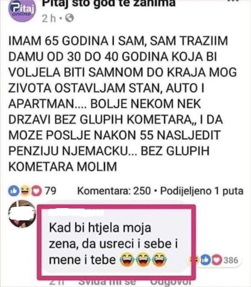 Tražio je ženu preko Facebook grupe, iskreni komentar ovog tipa širi se regijom brzinom munje