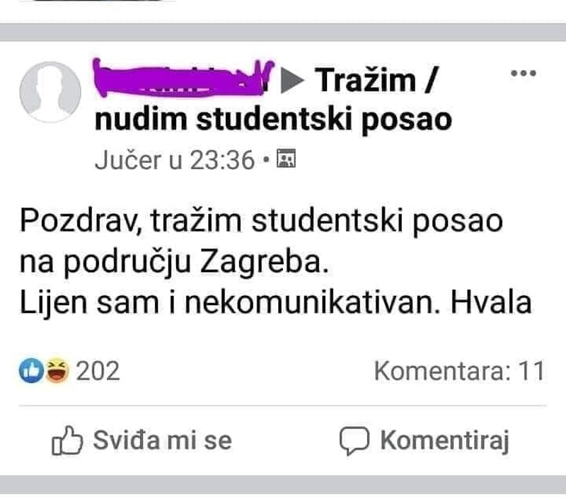Student traži posao u Zagrebu, oglas je odmah postao hit zbog nekoliko detalja