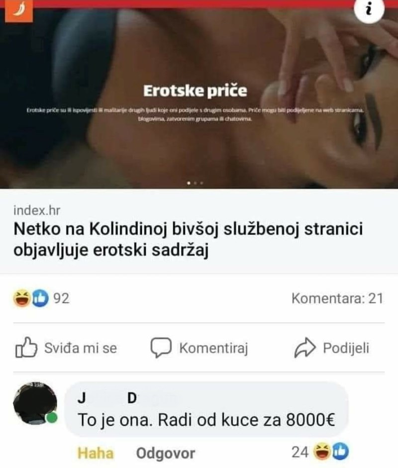 Nakon što je Kolindina stranica podivljala i objavila erotski sadržaj, svi dijele ovaj komentar