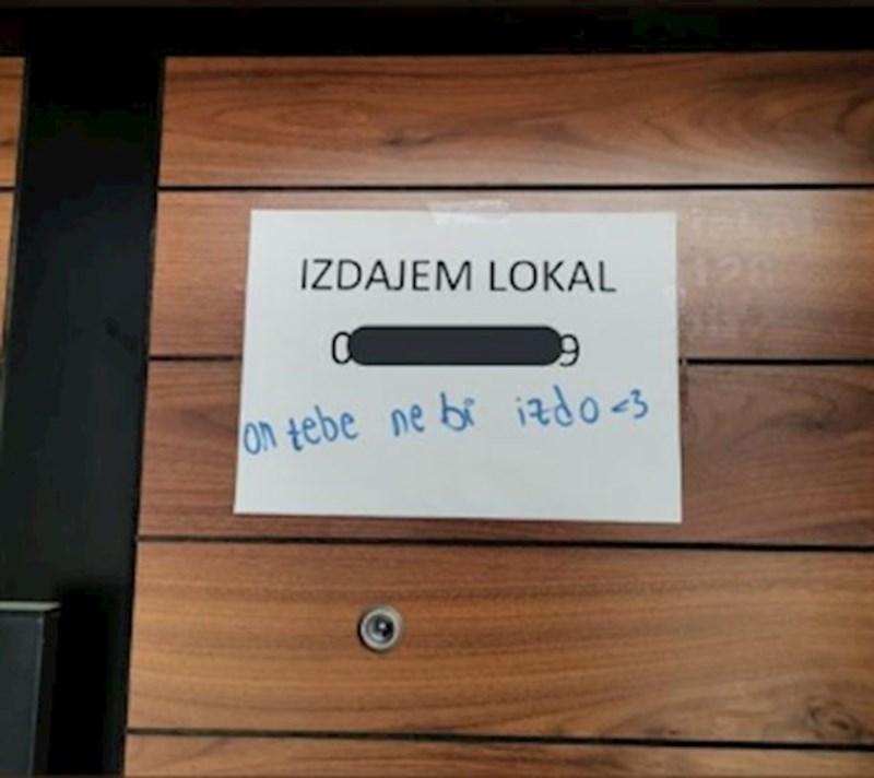 Vlasnik iz BiH ostavio je obavijest o najmu lokala, fotka je hit zbog onoga što je netko dopisao