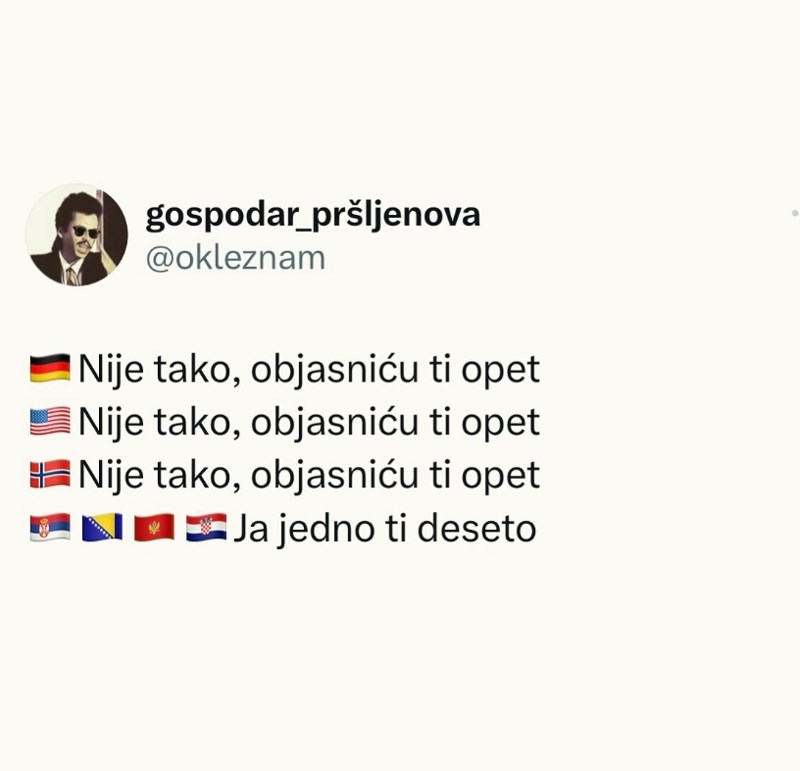 Fora prikazuje uzrečicu svojstvenu Balkancima kada više od dva puta trebaju nešto objasniti, hit je!
