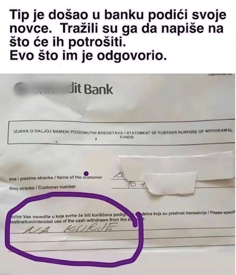 Jedan je čovjek s ovih prostora otišao u banku podići svoj novac te se iznenadio kad su ga tražili da otkrije na što ga namjerava potrošiti.