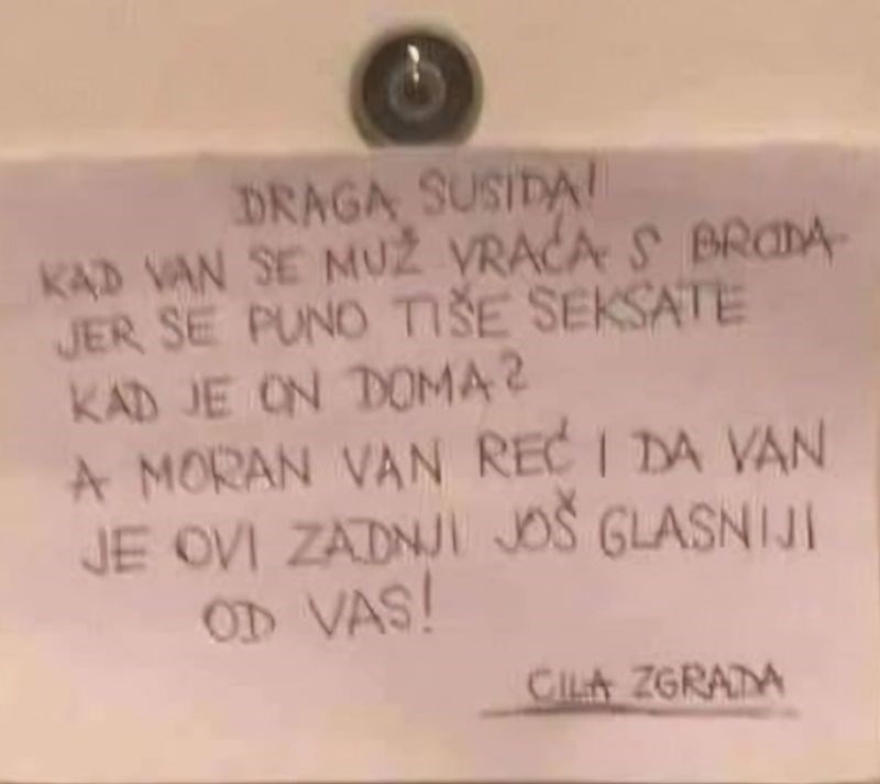Stanari zgrade u Splitu ostavili su poruku za glasnu susjedu, ovo je kao iz meksičkih sapunica