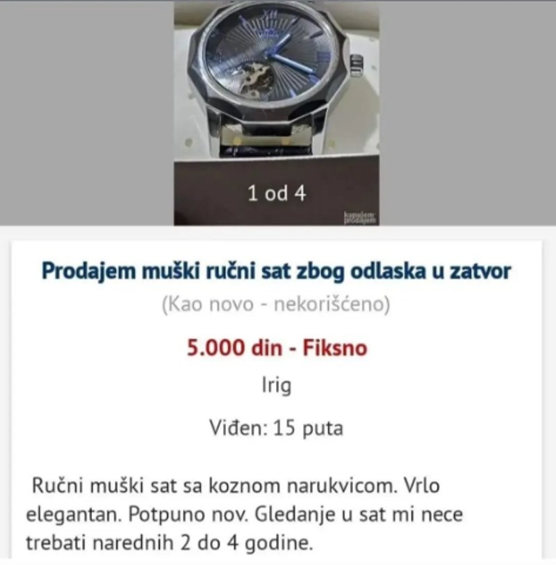 Oglas u kojem se prodaje sat nasmijao je regiju urnebesnim detaljem, morate vidjeti razlog prodaje