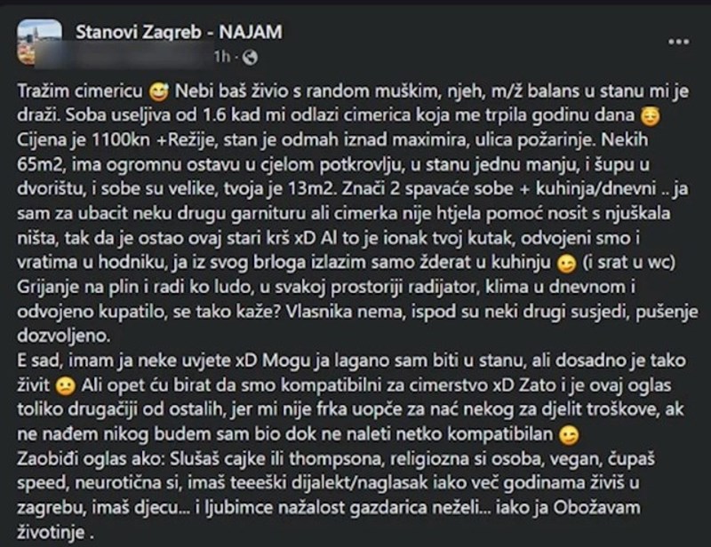 Tip iz Zagreba traži cimericu, ekipa je apsolutno oduševljena iskrenim oglasom