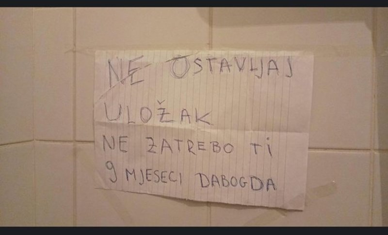 Netko je svojom nehigijenom izazvao bijes čistačice koja je neurednoj djevojci ostavila upozorenje u obliku doista bizarne kletve. 😂