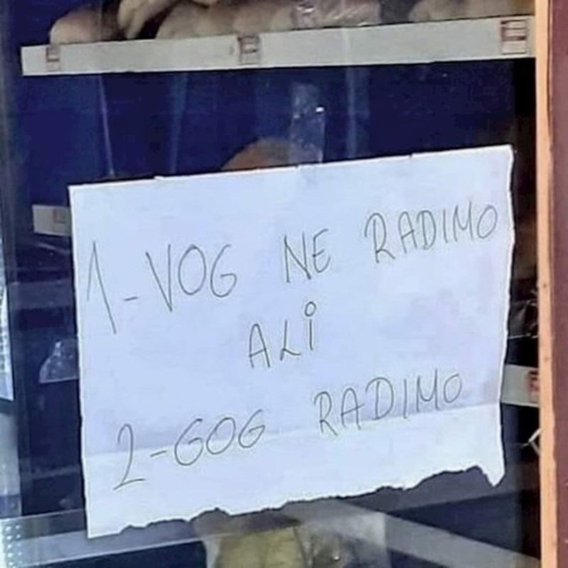 Kupci koji su došli do ulaznih vrata ove radnje imali su priliku vidjeti obavijest kakvu vjerojatno nikad nisu vidjeli. Vlasnik radnje (ili radnik?) ima svoj vlastiti pravopis i način pisanja datuma. 😜