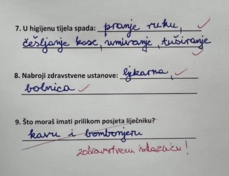 Možemo slobodno konstatirati da je istovremeno urnebesan, ali s druge strane i zabrinjavajuć. Ako ćemo iskreno, djetetov odgovor puno je bliži realnom stanju stvari nego učiteljičin ispravak. 😅