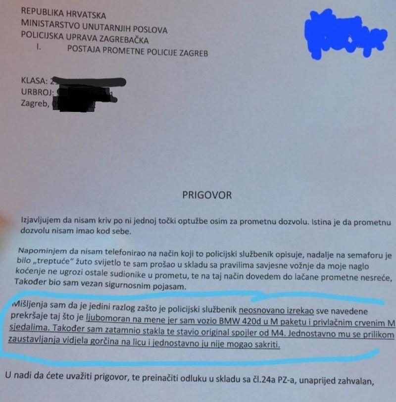 Policija je kaznila vozača BMW-a, morate vidjeti njegov prigovor. Urnebesan je!