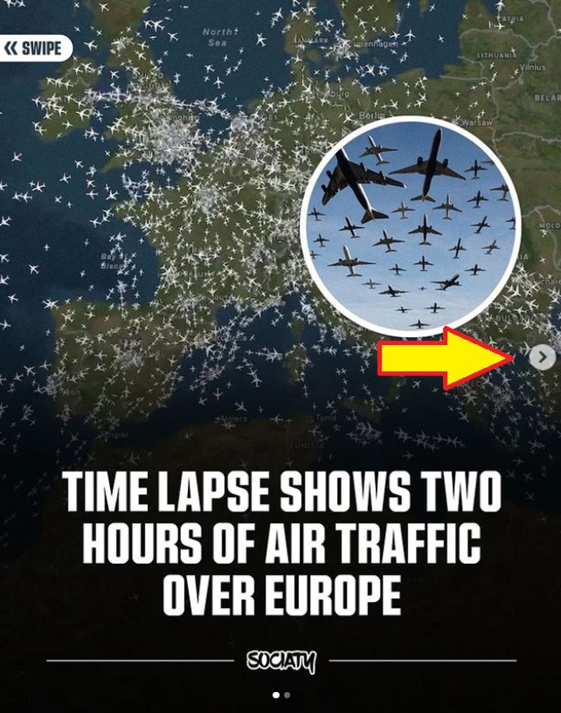 Snimka prikazuje dva sata zračnog prometa iznad Europe, fascinantna je