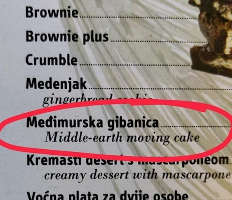 U restoranu su pokušali prevesti gibanicu na engleski, to je najbolja stvar koju ćete danas vidjeti