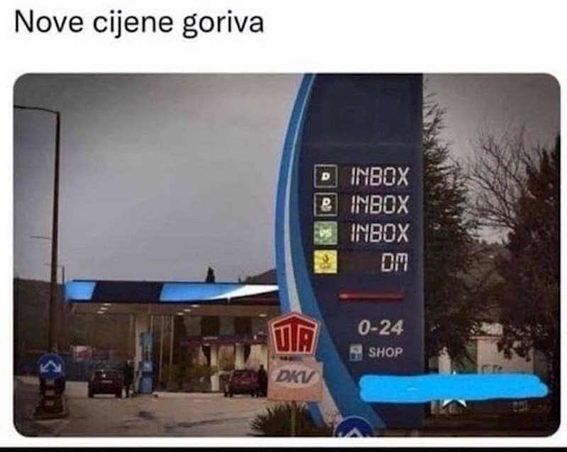 Dakle, fotka je smiješna jer se referira na praksu online retailera na društvenim mrežama koji, kada ne žele otkriti cijenu proizvoda i navući ljude na kupovinu napišu - za cijenu se javite u inbox.