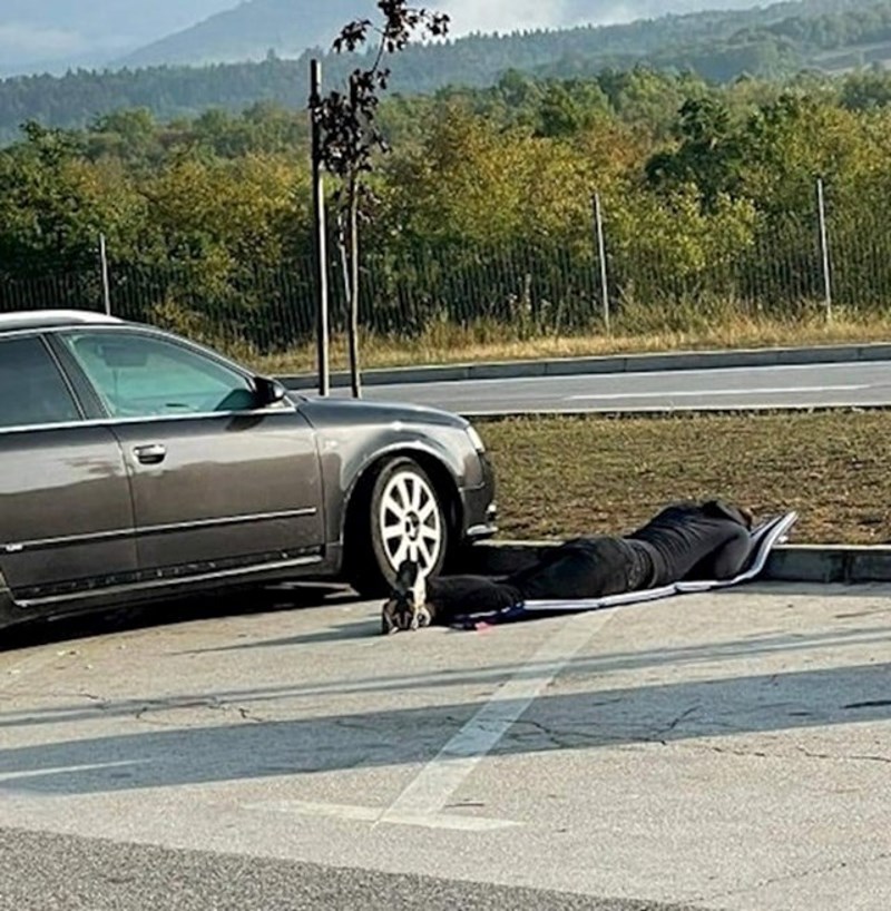 Fotka umornog vozača koji je odlučio malo prileći na asfaltu kod odmorišta Janjče izazvala je hrpu pozitivnih reakcija na Fejsu.