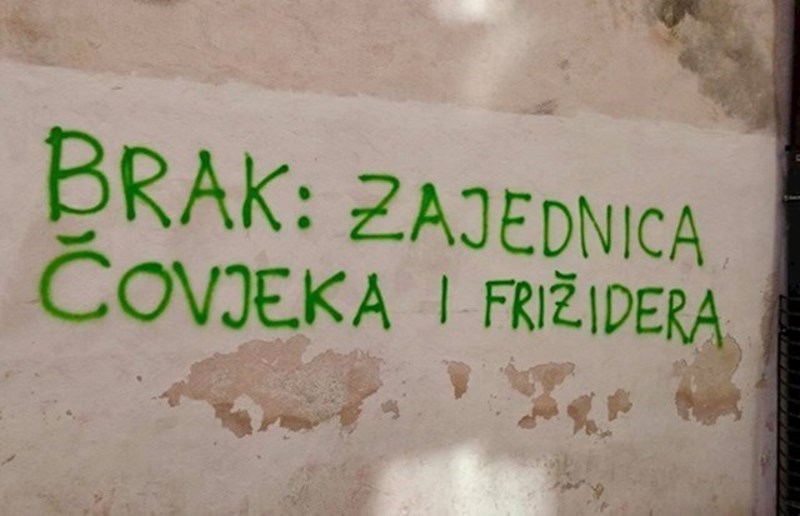 Na fasadi zgrade osvanuo je urnebesan grafit, morate vidjeti kako je autor definirao brak
