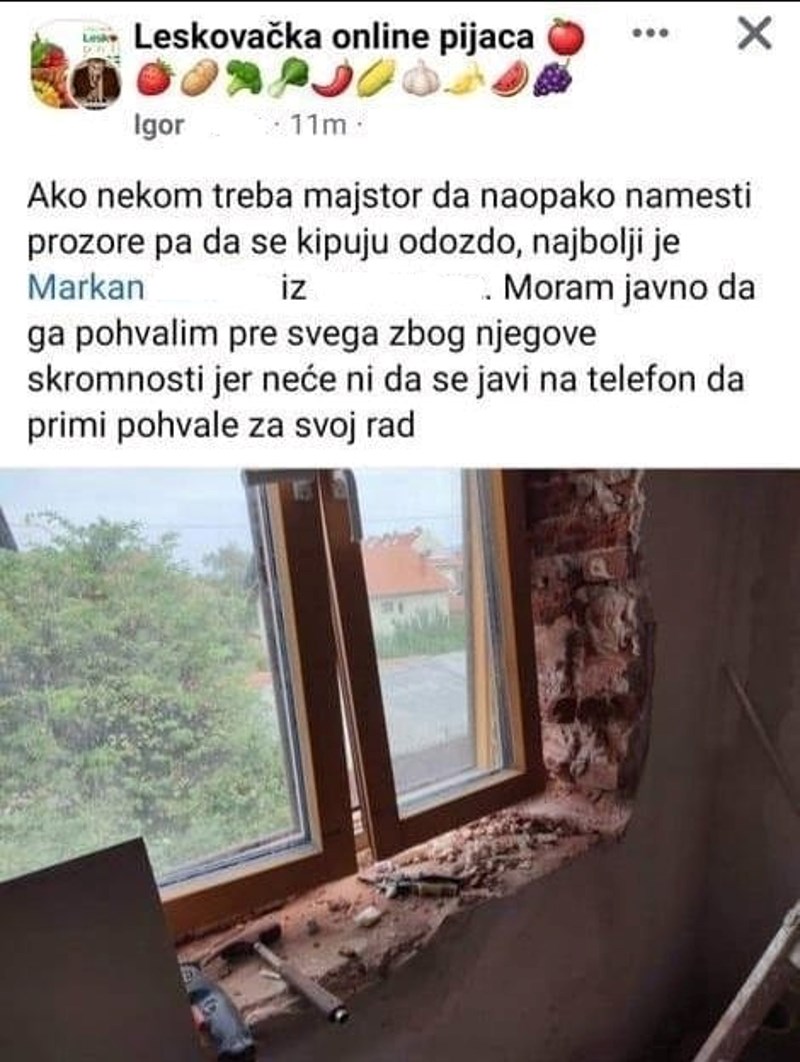 Majstor mu je krivo postavio prozor, njegova objava u mjesnoj FB grupi nasmijala je cijelu regiju