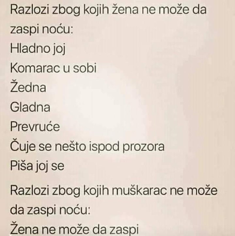 Netko je napravio urnebesan popis razloga za nespavanje kod žena i muškaraca, mnogi će se prepoznati