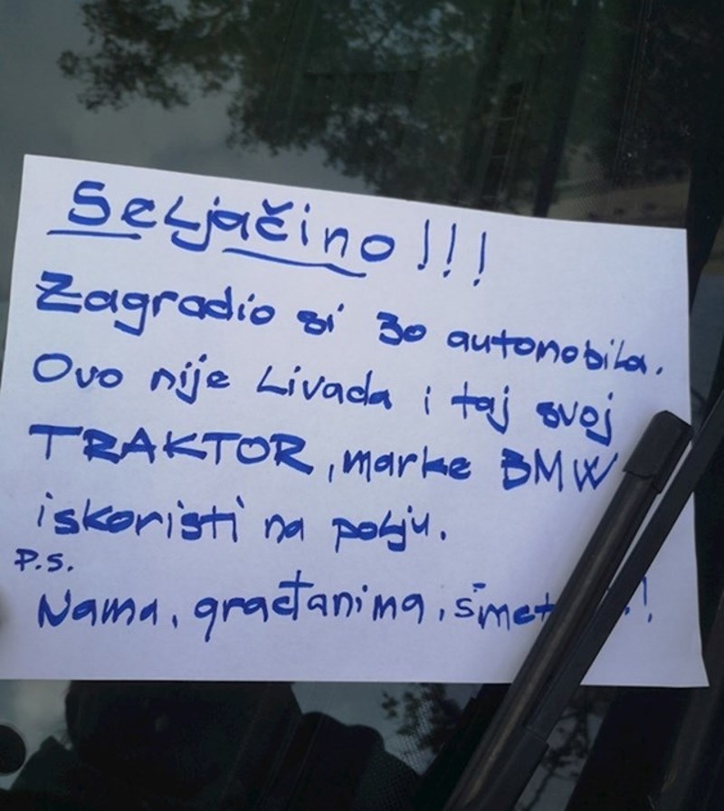 Poruka ostavljena na autu u Splitu širi se Fejsom- autor je bio jako kreativan u svom bijesu, hit je