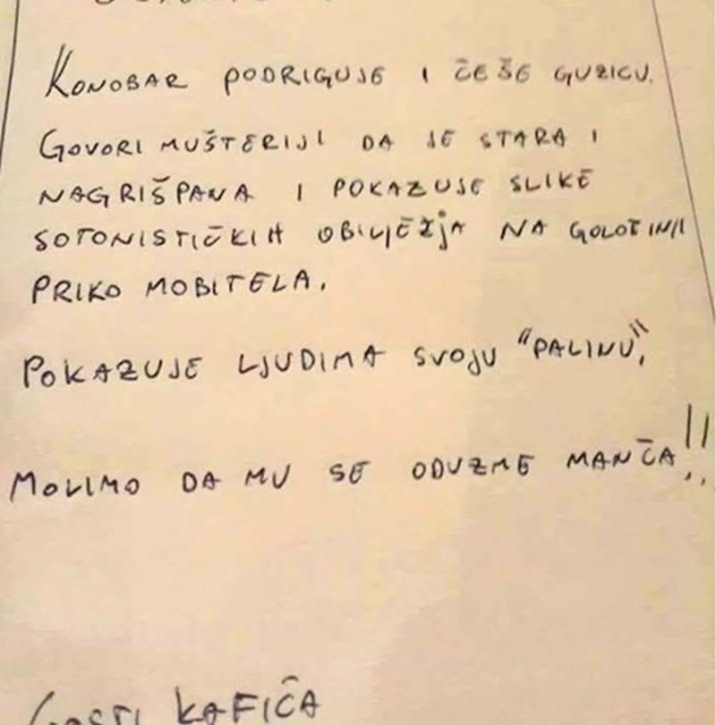 Ako je istina sve ovo što su gosti kafića napisali, oduzimanje manče je još i dosta blaga mjera kazne za ovog konobara...😬