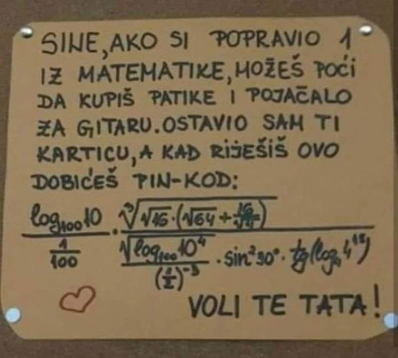 Tata je ostavio poruku za sina i otkrio mu pin svoje kartice, ali na način koji će teško dešifrirati