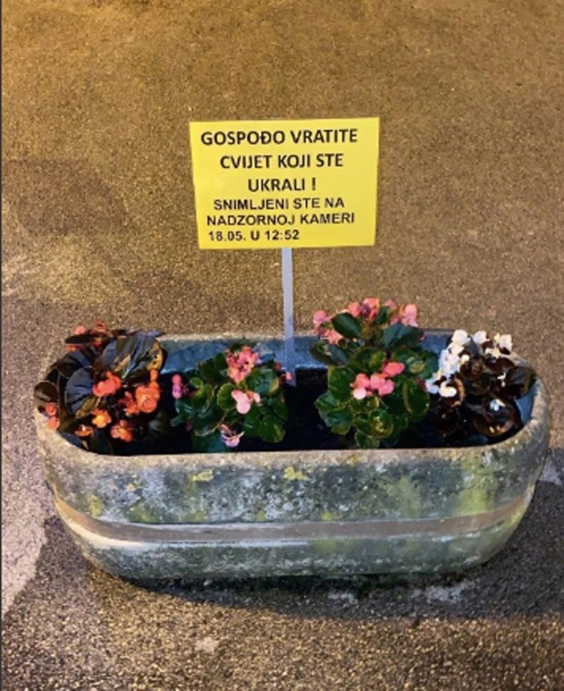 Netko je na zagrebačkim Vrbanima zapiknuo nesvakidašnju poruku u teglu za cvijeće. Upućena je gospođi koja je, navodno, ukrala jedan cvijet iz tegle, preko čega osoba koja o tom cvijeću i brine naprosto nije mogla prijeći. 😆