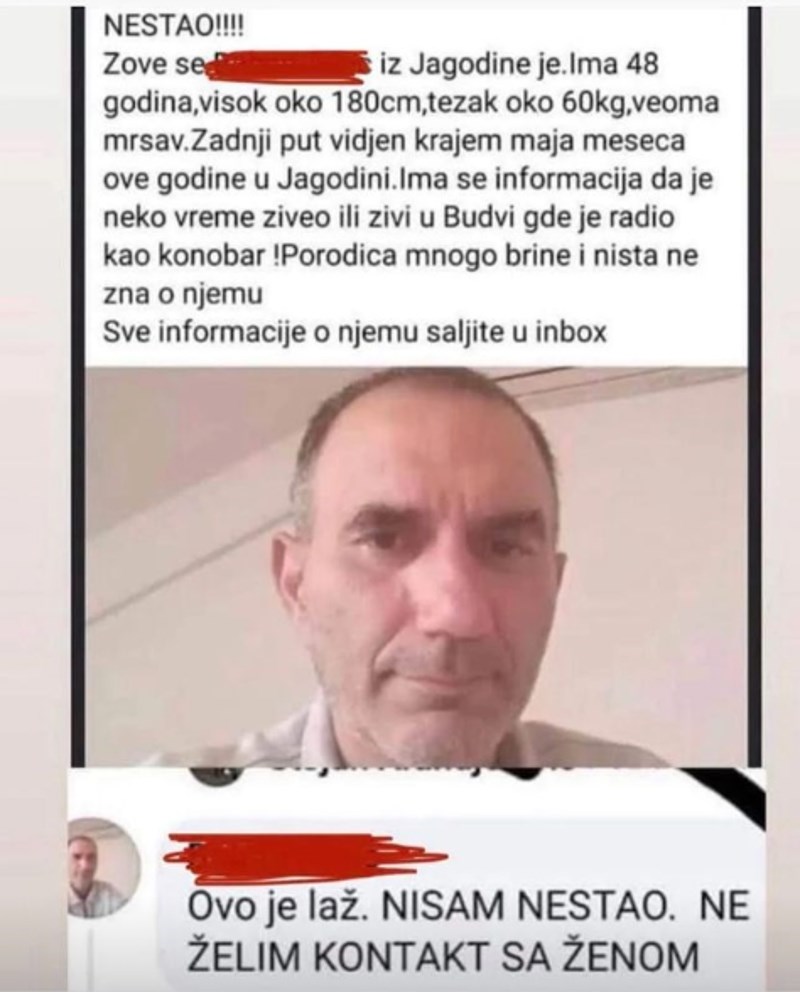 Zabrinuta rodbina tipa iz Jagodice objavila je apele za pomoć u potrazi za njim i podijelili su ih na društvenim mrežama. A onda je jednog dana osvanuo komentar od, ni više ni manje, nego samog nestalog. Mreže plaču od smijeha na njegovo obrazloženje nestanka...