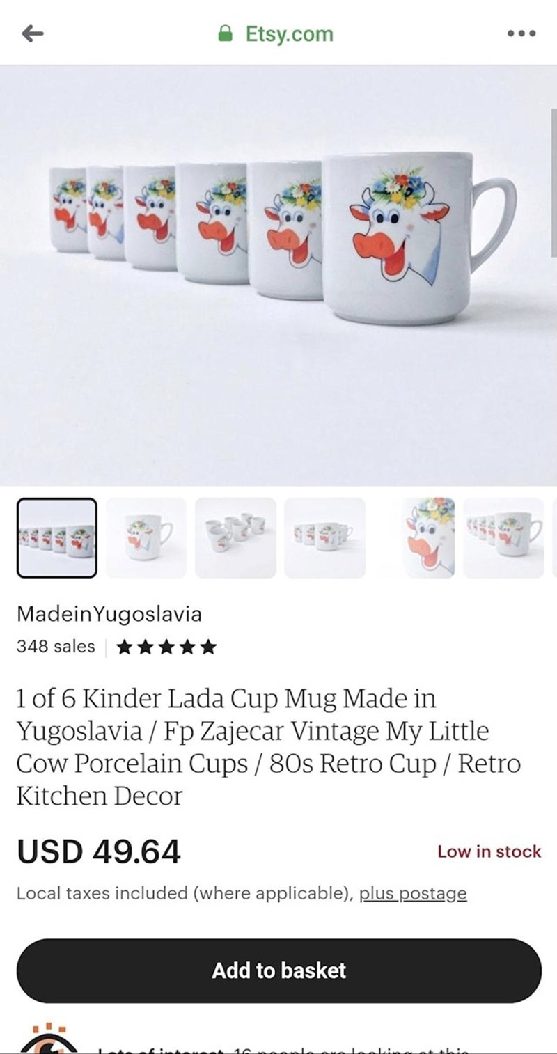 Sigurno se svi sjećate popularne šalice na kravicu. Ne samo sjećate, sigurno mnogi od vas kući imate još pokoji primjerak. A za sve nostalgičare koji su svoje polupali kroz godine tu je etsy gdje možete kupiti pokoji komad. Ali za paprenu cijenu. Naime komad košta 50 dolara. Da, dobro ste vidjeli, 50 dolara.