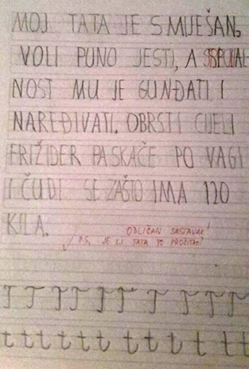 Učenik je za zadaću morao napisati sastavak o svojem tati, rezultat će vas nasmijati do suza