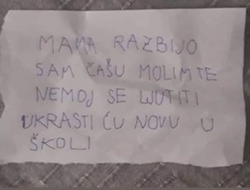 Klinac je razbio čašu pa mami napisao urnebesnu poruku u kojoj je otkrio kako se namjerava iskupiti