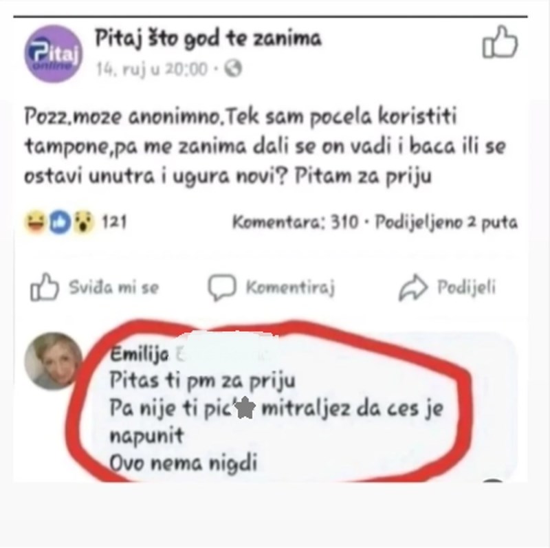 Raspitivala se o tamponima na FB-u. Pomalo brutalan, ali urnebesan odgovor ove žene obišao je regiju