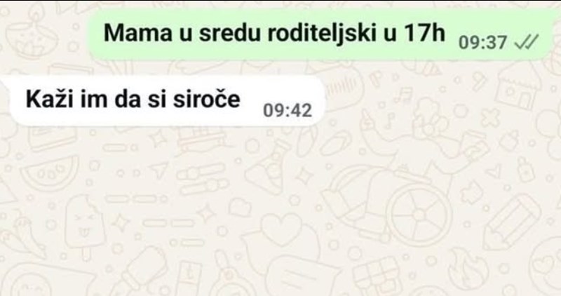 Dijete je poslalo mami obavijest o terminu roditeljskog sastanka, njen odgovor sad je hit u regiji