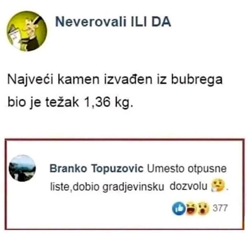 Zanimljivost o najvećem bubrežnom kamencu zasjenio je urnebesan komentar, morate vidjeti