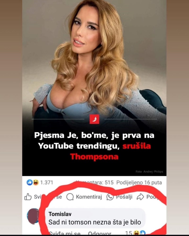 Nives Celzijus je izbacila pjesmu i srušila Thompsona s vrha ljestvica, svi se smiju ovom komentaru