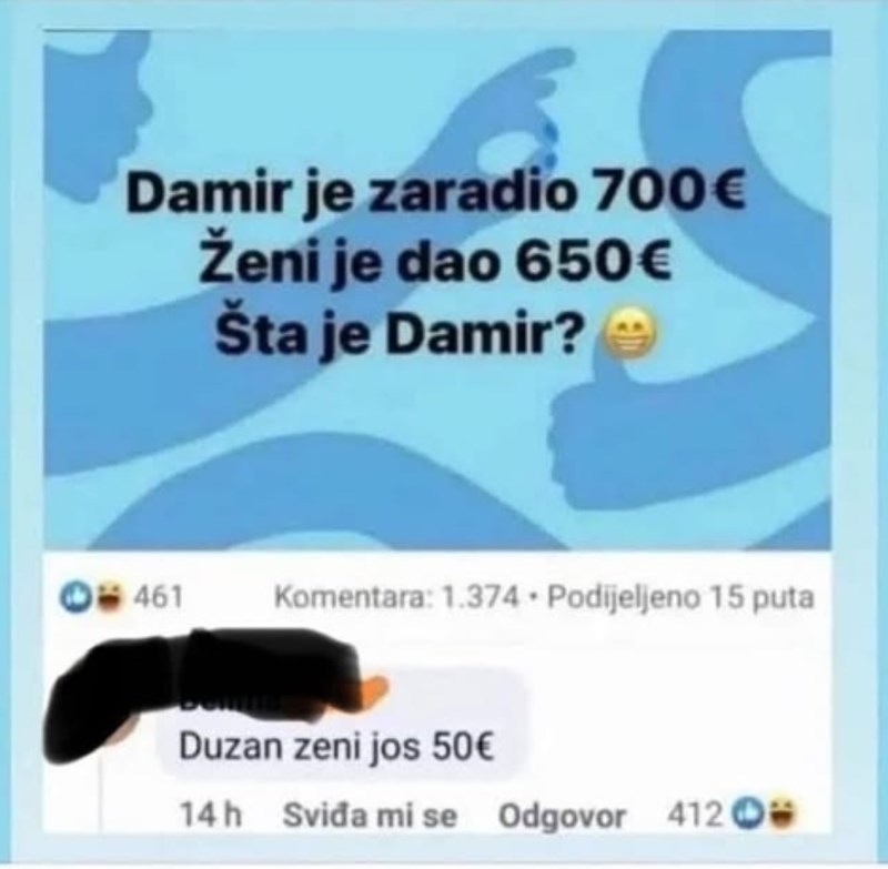 Odgovor jednog očigledno prestrašenog muža na ovu zagonetku hit je na Fejsu, morate vidjeti