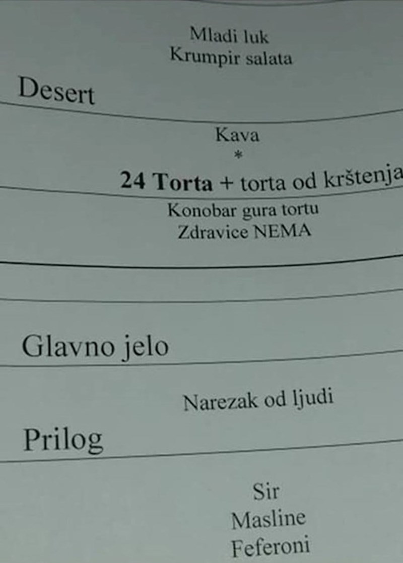 Bizarna greška u meniju zgrozila je uzvanike na krštenju, morate vidjeti kako su nazvali glavno jelo