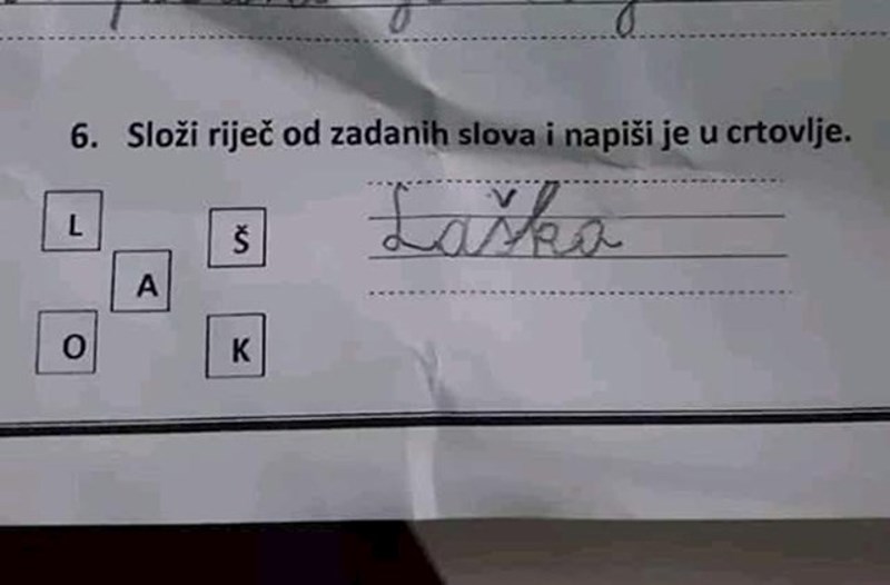 Učenik je od slova trebao sastaviti riječ, svojim rješenjem je nasmijao učiteljicu