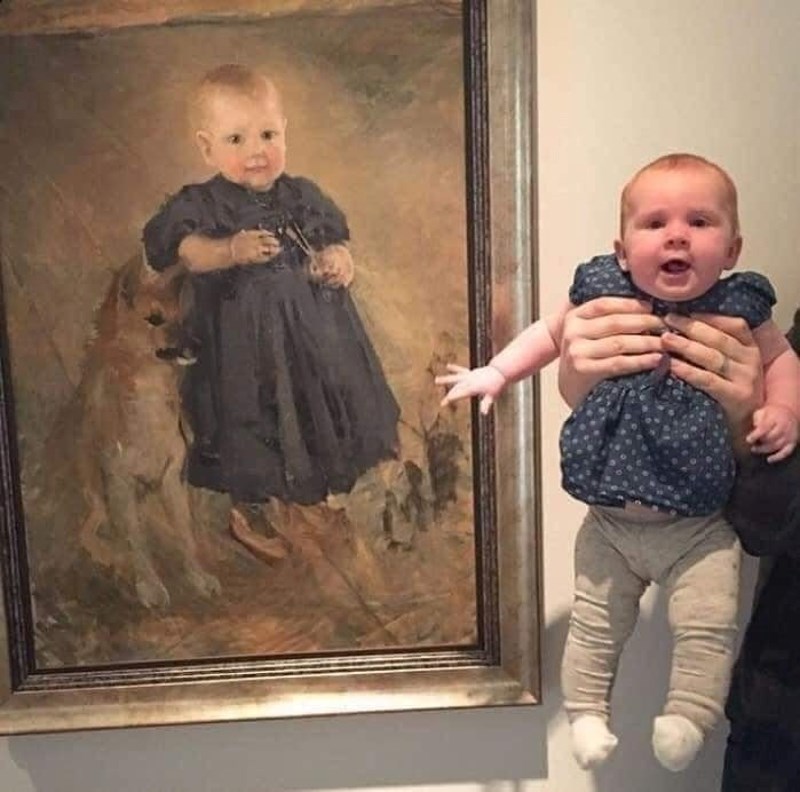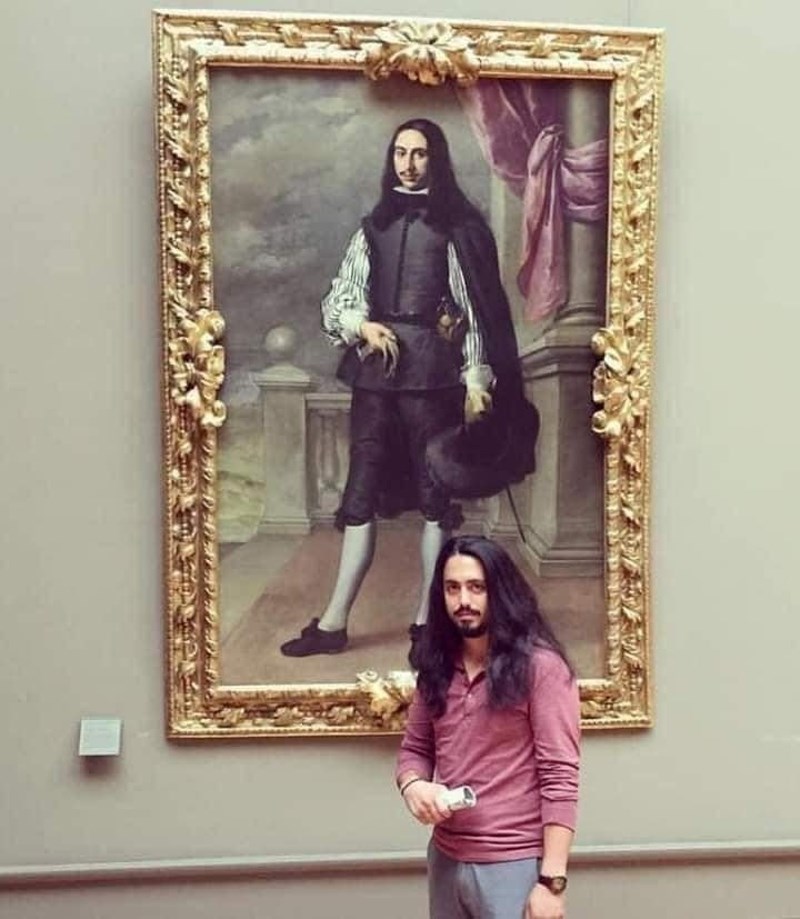 Zamisli scenu: stojiš pred starom slikom u muzeju i vidiš lice identično tvome. Slika te gleda kao da misli: “E, pa nisam znao da ću se reinkarnirat u nekog s trapericama i mobitelom u ruci.” A ti razmišljaš: “Evo ga, moj davni rođak, a izgleda da smo obojica mislili da smo jedinstveni.” Tako muzej postane mjesto gdje shvatiš da imaš dvojnika iz prošlog stoljeća, i obojica se pitate kako je moguće da je moda tako drastično otišla u krivom smjeru.