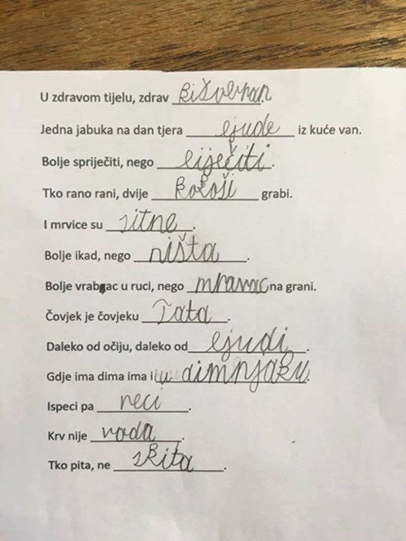 Učenici su morali dovršiti poslovice, odgovori jednog djeteta izazvali su salve smijeha na mrežama