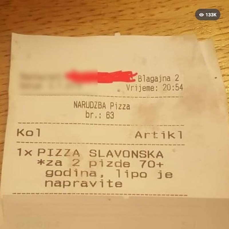 Dvije starije gospođe su u Dalmaciji posjetile pizzeriju i naručile slavonsku pizzu. Evo što je pisalo na dijelu u kojem je pisala narudžba.