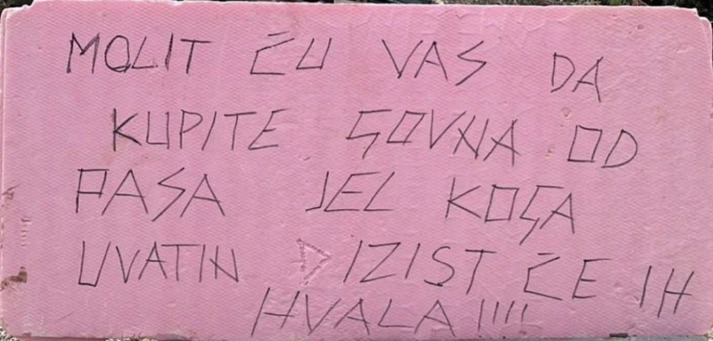 Ovom je čovjeku očito dosadilo izbjegavati pseće "mine" pa se, sav iznerviran, odlučio napisati poruku upozorenja neodgovornim vlasnicima.