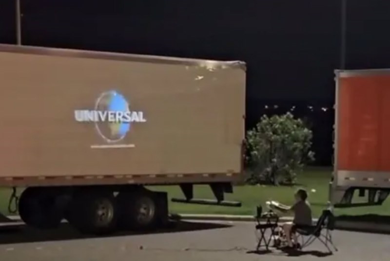 Čovjek je na jednom odmorištu, uz pomoć projektora i cerade na svojem kamionu priredio pravo malo kino pod zvijezdama. Svaka čast!