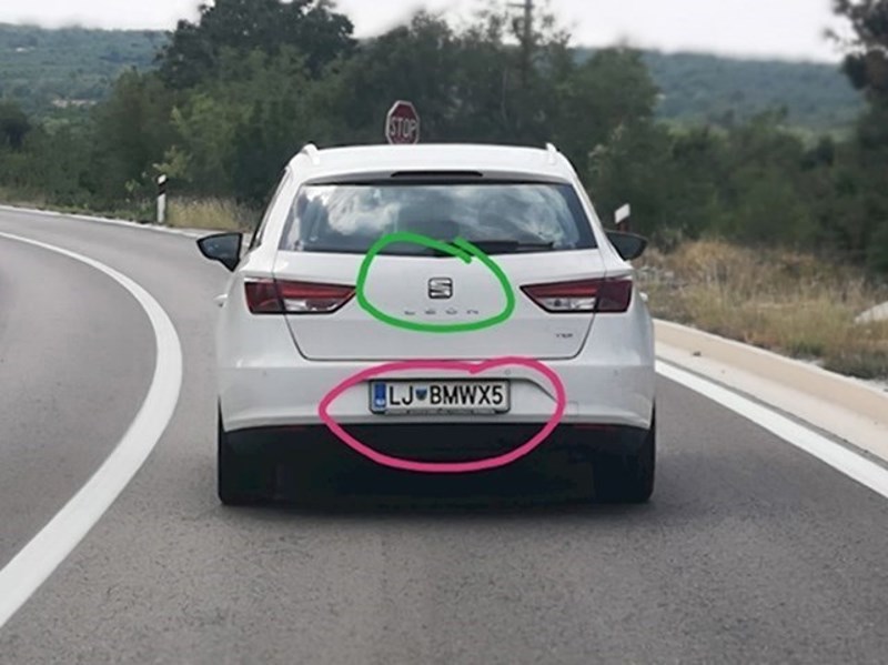 Čini se da ovaj vozač iz Slovenije nije baš pretjerano zadovoljan svojim autom. Gledajući njegove registarske tablice, zaključujemo da bi radije vozio BMW. U oznaci je čak naveo i model koji mu se sviđa. :)
