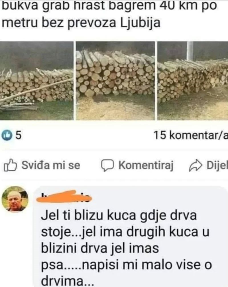 Tip prodaje drva za ogrjev preko Fejsa, jedan komentar ukrao je svu pažnju