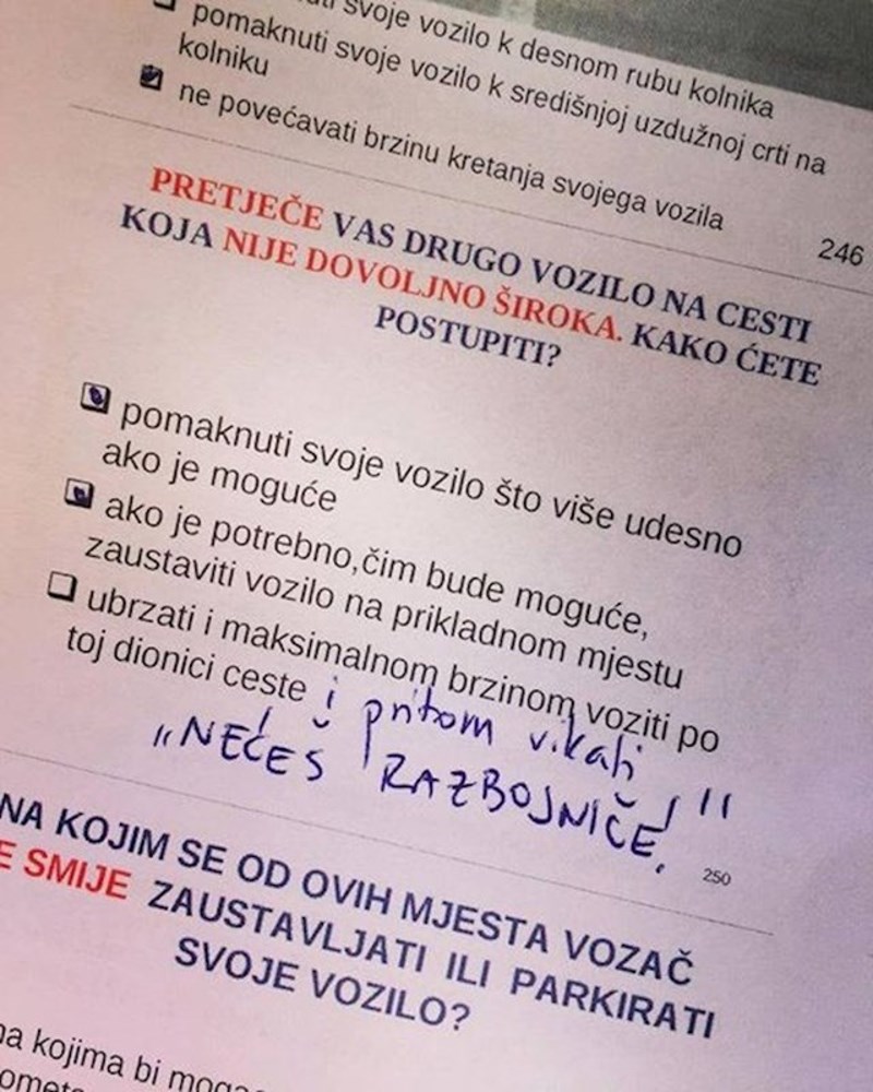 Netko je u autoškoli nadopisao na test alternativno rješenje i moramo priznati da se slažemo