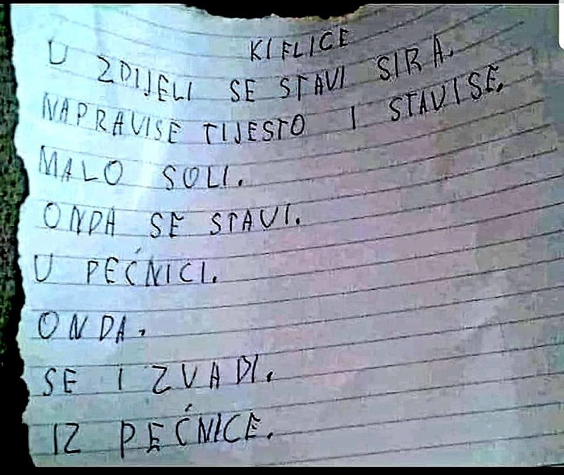 Dijete je zapisalo recept za svoje omiljeno jelo- kiflice. Nema koga nije nasmijalo i raznježilo