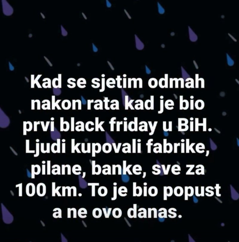 Svi dijele status tipa iz Bosne o prvom Black Fridayu u devedesetima. Morate vidjeti